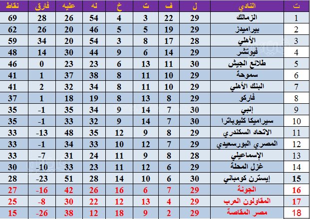 جدول ترتيب الدوري الممتاز بعد مباريات اليوم