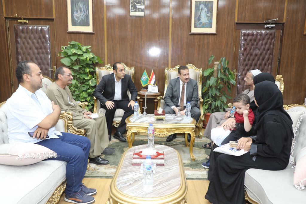 محافظ المنوفية يستقبل أسرة شهيد لقمة العيش الصيدلي "أحمد حاتم" بمكتبه