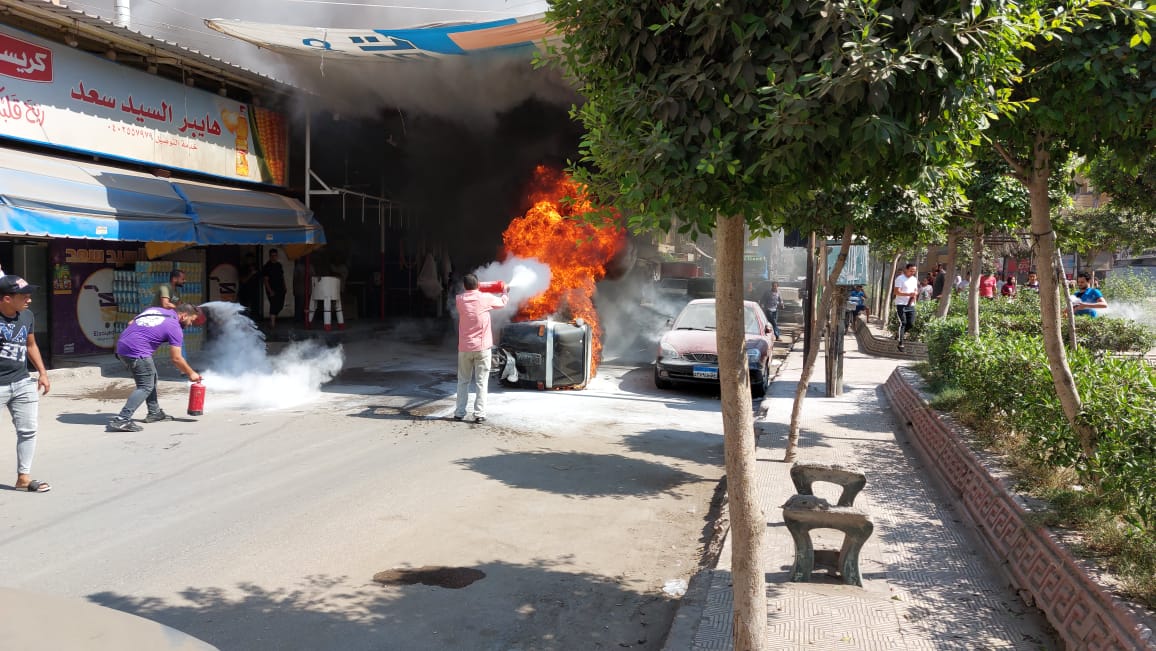 14 صورة ترصد اشتعال النيران في توك توك دون قوع اصابات بكفر الزيات