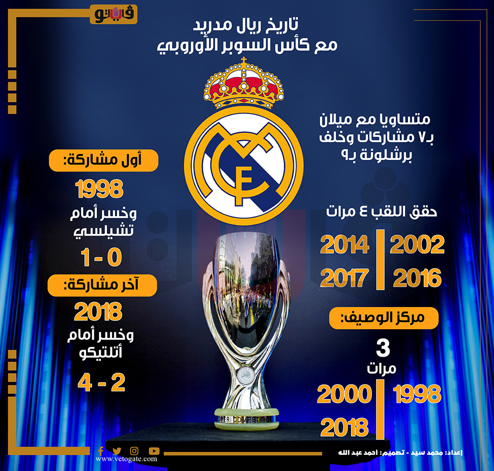 تاريخ ريال مدريد مع كأس السوبر الأوروبي| انفوجراف الأربعاء 10/أغسطس/2022 - 07:00 م 8/10/2022 7:00:25 PM ريال مدريد محمد سيد شارك طباعة 18 حجم الخط شارك طباعة أتلتيكو مدريد السوبر الاوروبي تشيلسي ريال مدريد كاس السوبر الاوروبي ميلان برشلونة