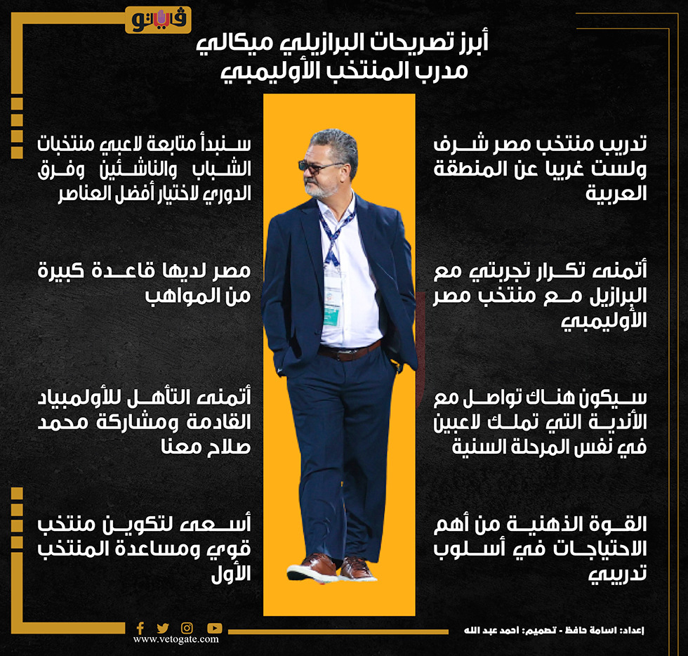 أبرز تصريحات البرازيلي ميكالي مدرب المنتخب الأوليمبي| انفوجراف الأربعاء 10/أغسطس/2022 - 08:30 م 8/10/2022 8:30:22 PM ميكالي اسامة حافظ شارك طباعة 18 حجم الخط شارك طباعة الأوليمبي التأهل للأولمبياد الأولمبي المنتخب الاولمبى تدريب منتخب مصر ميكالي