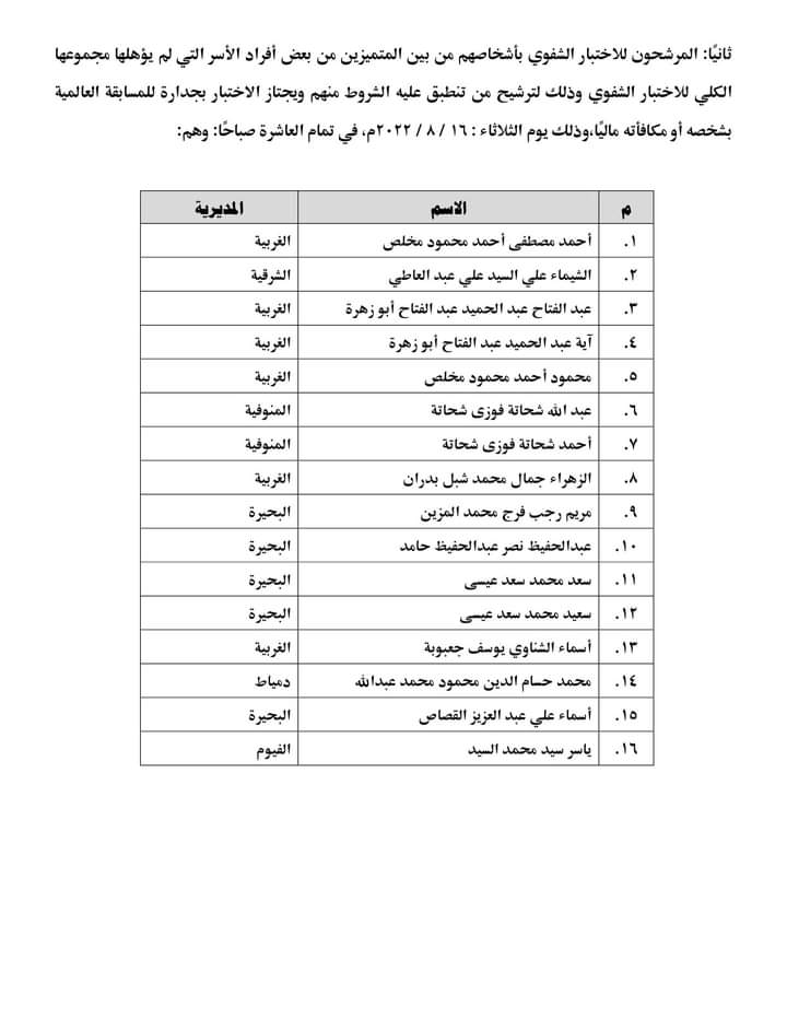 بالأسماء.. موعد الاختبارات الشفوية لمسابقة الأسرة القرآنية