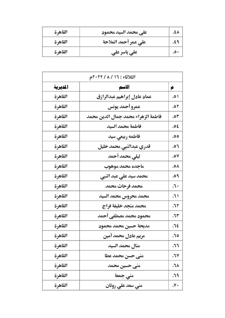 وأشارت إلى أن مواعيد الاختبار سواء لمن سبق تقديمهم من حملة المؤهلات المتوسطة ولم يتم اختبارهم أو المتقدمين الجدد يكون من يوم الاثنين الموافق 15 / 8 / 2022م، حتى الأربعاء 17 / 8 / 2022م.