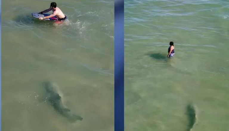 عبرت سمكة قرش كانت تبحث على ما يبدو عن طعام من اللحم البشري على بعد 3 أمتار فقط بجوار رجل وامرأة في ولاية فلوريدا بالولايات المتحدة الأمريكية.