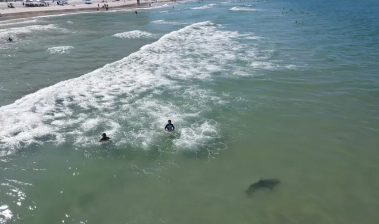 وفي الفيديو، يبدو أن 2 من السباحين يشاهدان الطائرة بدون طيار ويلوحان لها، بينما يبدو أن القرش على بعد 3 أمتار فقط من مكان وجودهما، ويبدو أن القرش ينظر في اتجاههما قبل أن يسبح بعيدًا في النهاية.