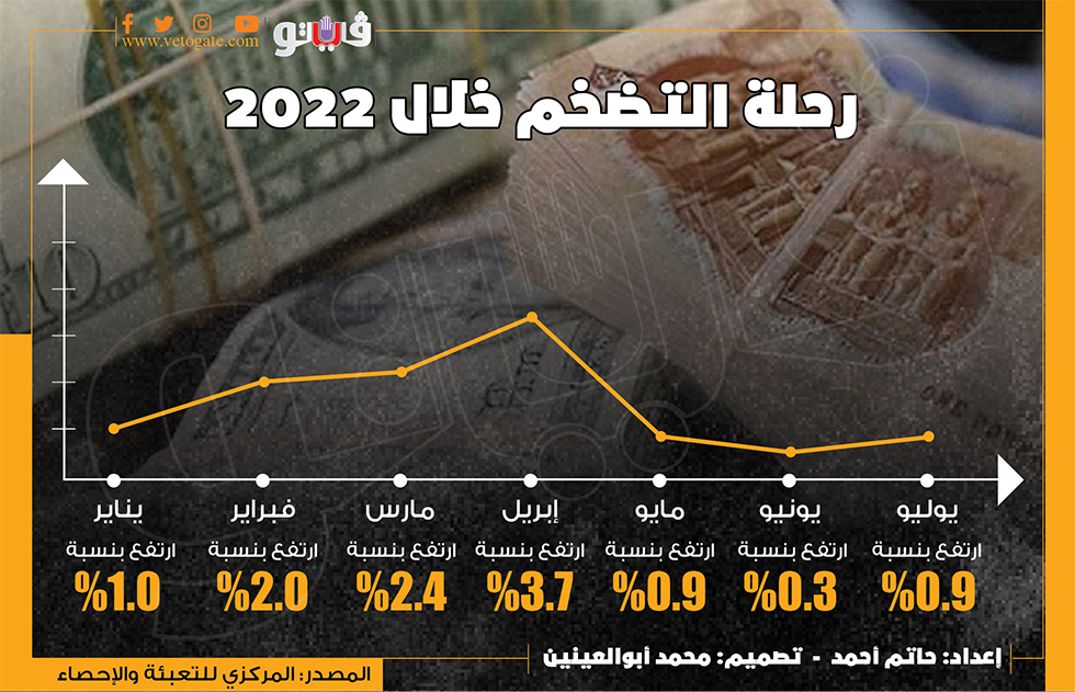 رحلة التضخم خلال 2022 | انفوجراف الخميس 11/أغسطس/2022 - 06:38 م 8/11/2022 6:38:11 PM ارتفاع معدل التضخم حاتم أحمد شارك طباعة 18 حجم الخط شارك طباعة التضخم أزمة التضخم أسباب ارتفاع التضخم الجهاز المركزى للتعبئة العامة والإحصاء
