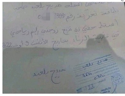 وجاء في الوثيقة التي تم تسريبها والتي تتمثل في تنازل زوج الممثلة عن حقه في ملاحقة زوجته قضائيًّا: "إني الموقع أسفله مديح بلعيد.. أسقط حقي في تتبع زوجتي ريم الرياحي في قضية الزنا".