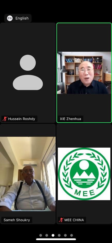 أجرى وزير الخارجية سامح شكري، الرئيس المعين للدورة ٢٧ لمؤتمر أطراف اتفاقية الأمم المتحدة الإطارية لتغير المناخ، اليوم الخميس ١١ أغسطس ٢٠٢٢، اتصالًا مرئيًا بمبعوث المناخ الصيني "شي شينهوا".