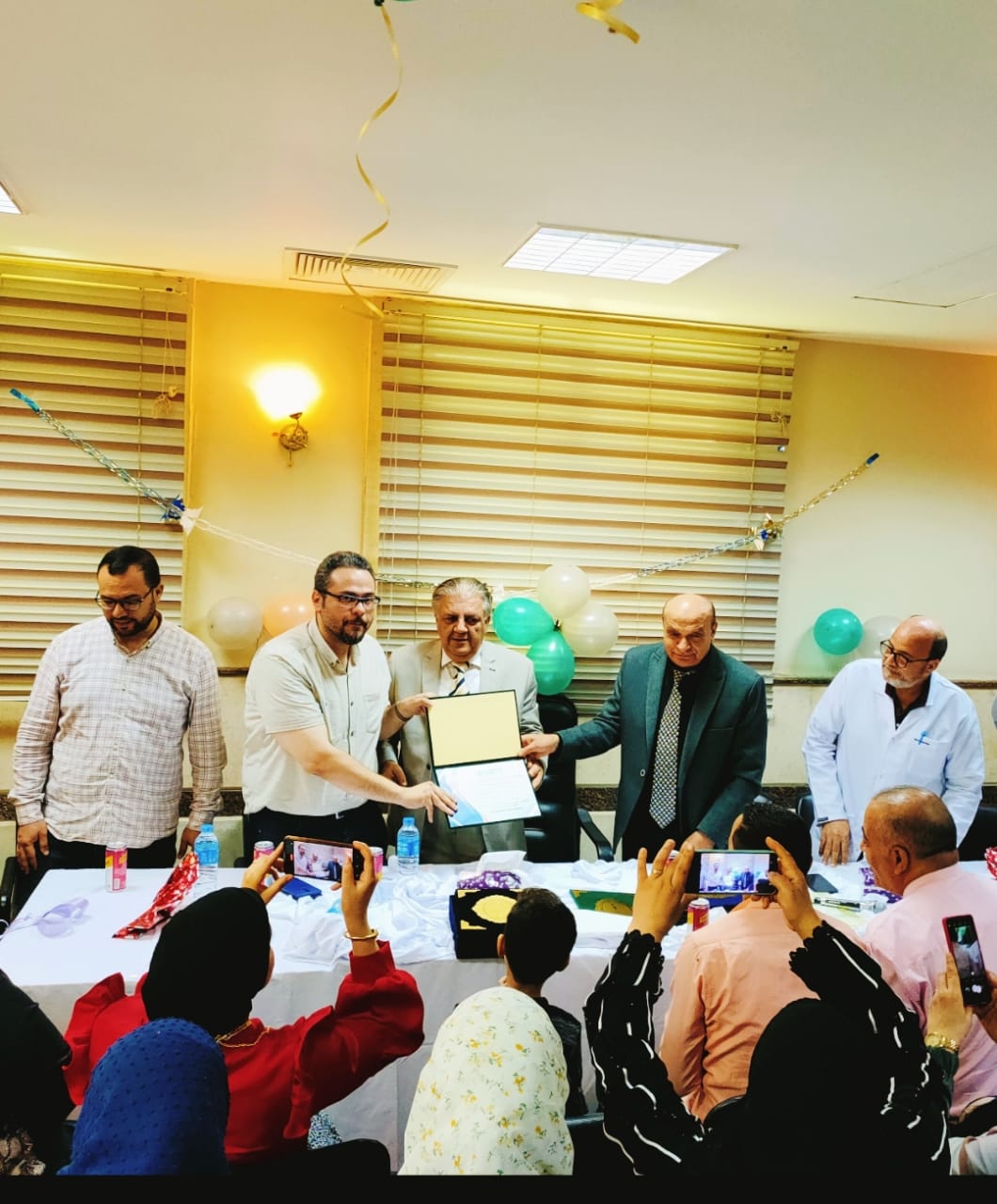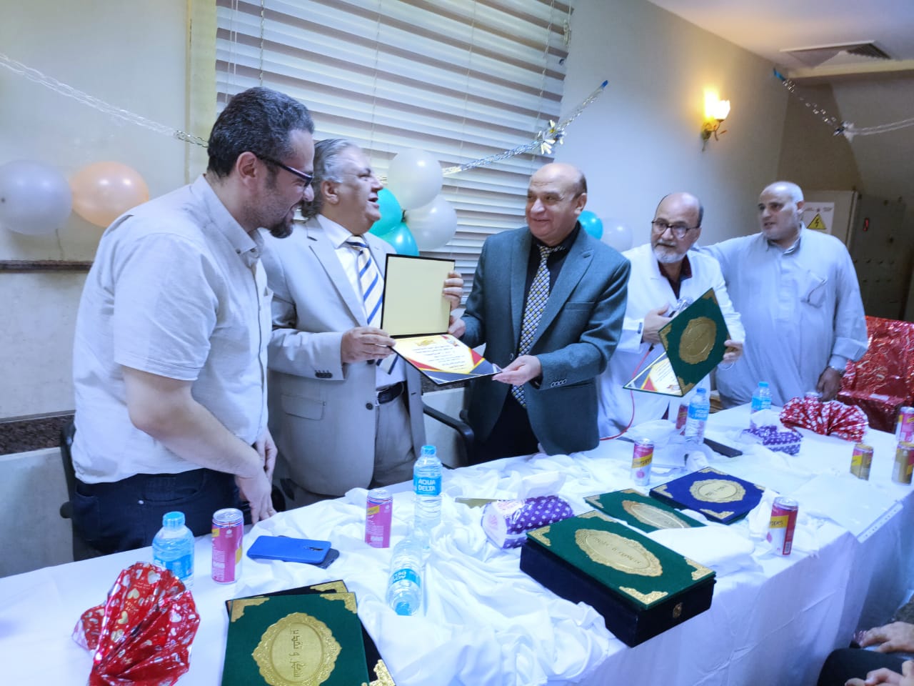وفي ختام الزيارة شارك مكين بحفل تكريم الدكتور محمود حافظ مدير المستشفى ورئيس قسم الكلى لبلوغه السن القانوني للمعاش متمنيًا له دوام الصحة والعافية.