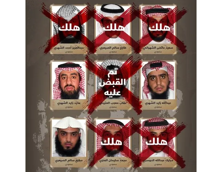 وفي طور متابعة الجهات الأمنية للإرهابيين تمكنت من القضاء على اثنين من الإرهابيين كان أحدهما من ضمن الخلية وهو الهالك طايع سالم الصيعري، والذي يعد الأخطر بعد زعيم الخلية سعيد الشهراني.