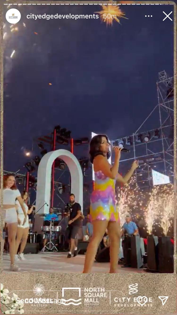 بدأت النجمة روبي حفلها المقام حاليا بمدينة العلمين الجديدة في الساحل الشمالي، وشهد الحفل حضورا جماهيريا كبيرا.