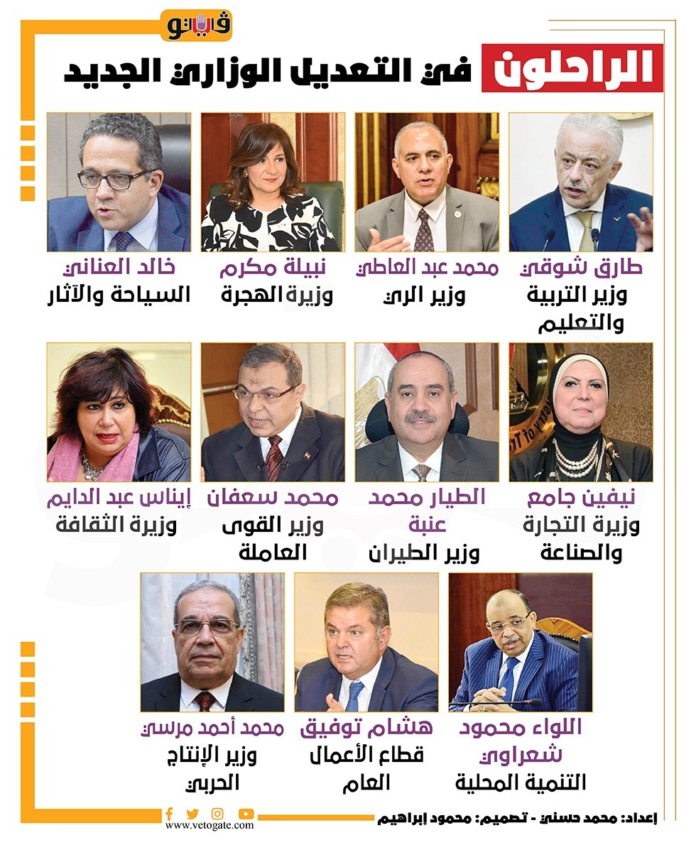 الراحلون في التعديل الوزاري الجديد | إنفوجراف السبت 13/أغسطس/2022 - 01:33 م 8/13/2022 1:33:07 PM شارك طباعة 18 حجم الخط شارك طباعة