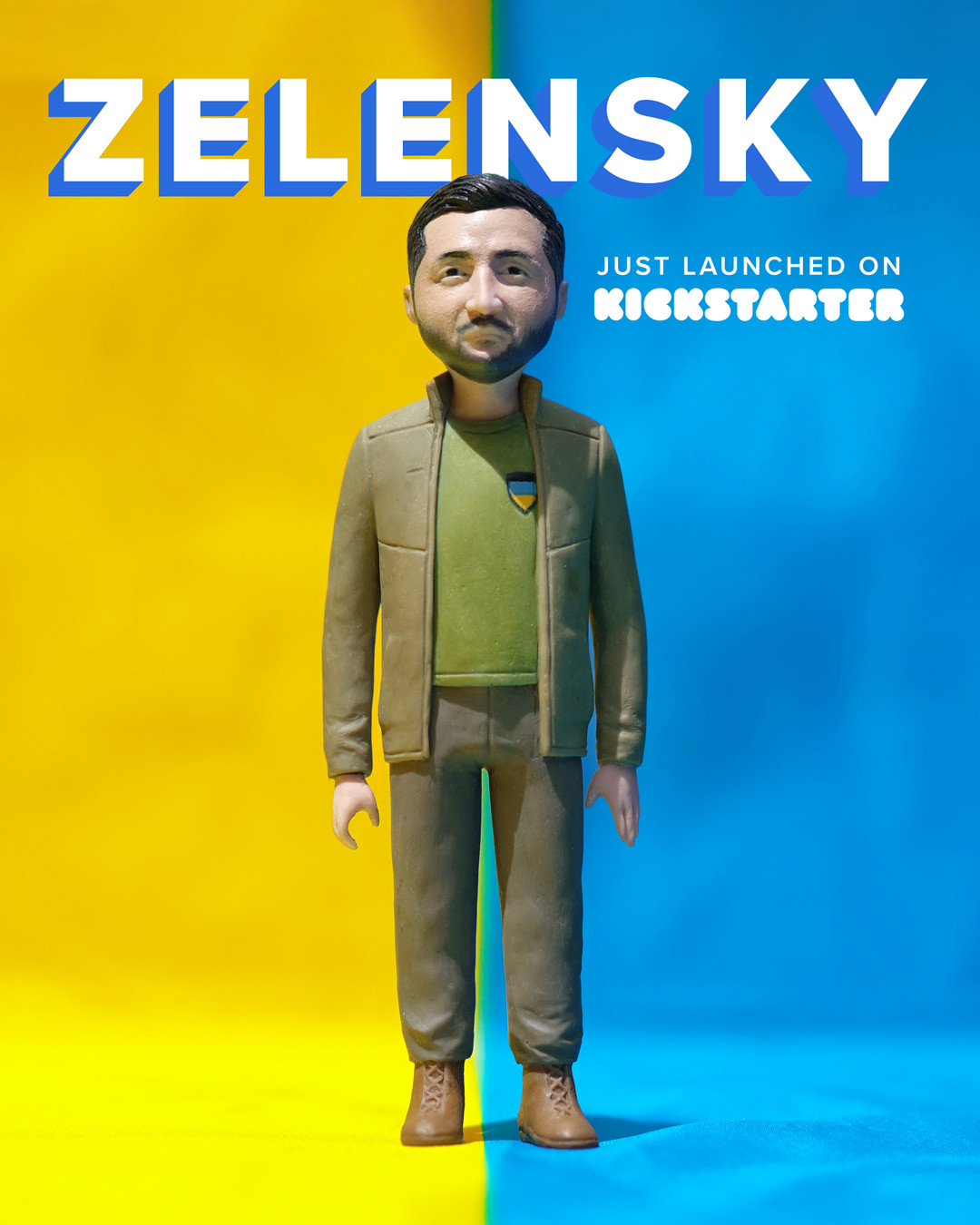 وعرضت كل من شركة ”فاكتري“، وحملة ”كيك ستارتر“، إعلانا لنموذج الدمية المتحركة لشخصية زيلينسكي في منشور على موقع ”فيسبوك“ في 27 يوليو الماضي.