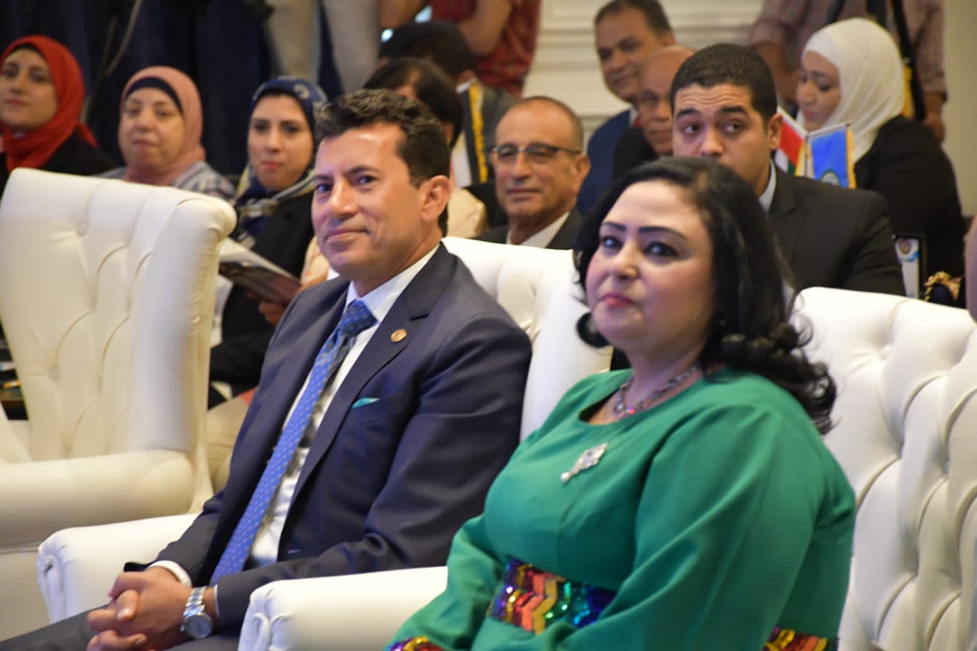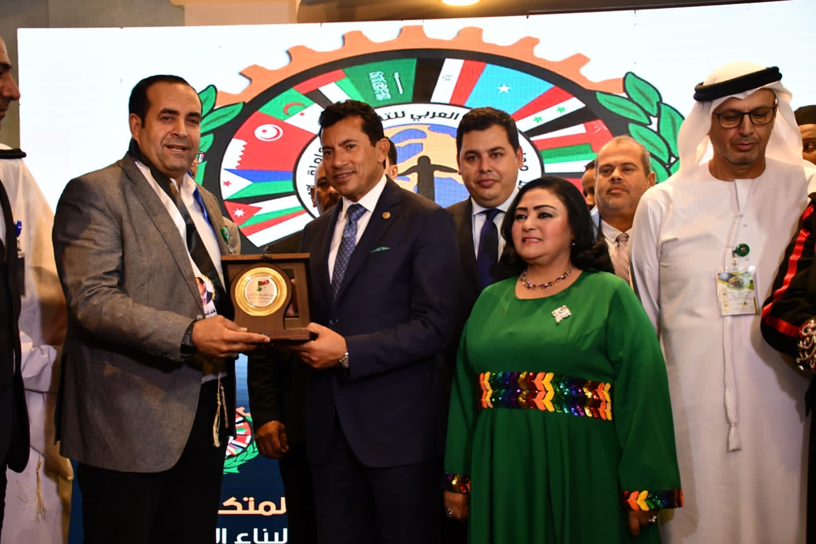 وقدمت الدكتورة مشيرة أبو غالى رئيس مجلس الشباب العربى للتنمية المتكاملة وسام بناء الوعى العربى إلى وزير الشباب والرياضة الدكتور أشرف صبحى تقديرًا لجهوده المثمرة على مستوى قطاعى الشباب والرياضة.
