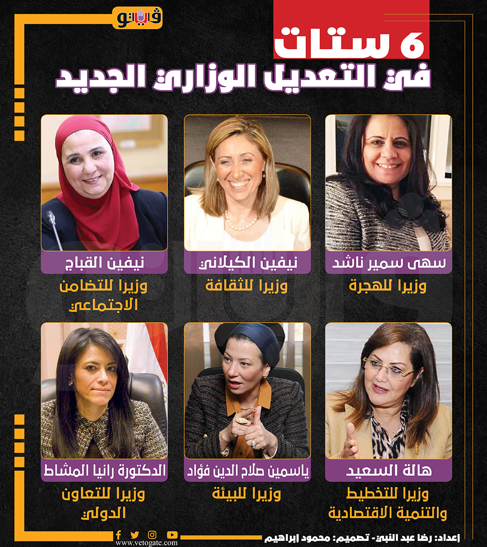 6 ستات في التعديل الوزاري الجديد | انفوجراف السبت 13/أغسطس/2022 - 05:00 م 8/13/2022 5:00:53 PM وزيرات الحكومة رضا عبدالنبى شارك طباعة 18 حجم الخط شارك طباعة