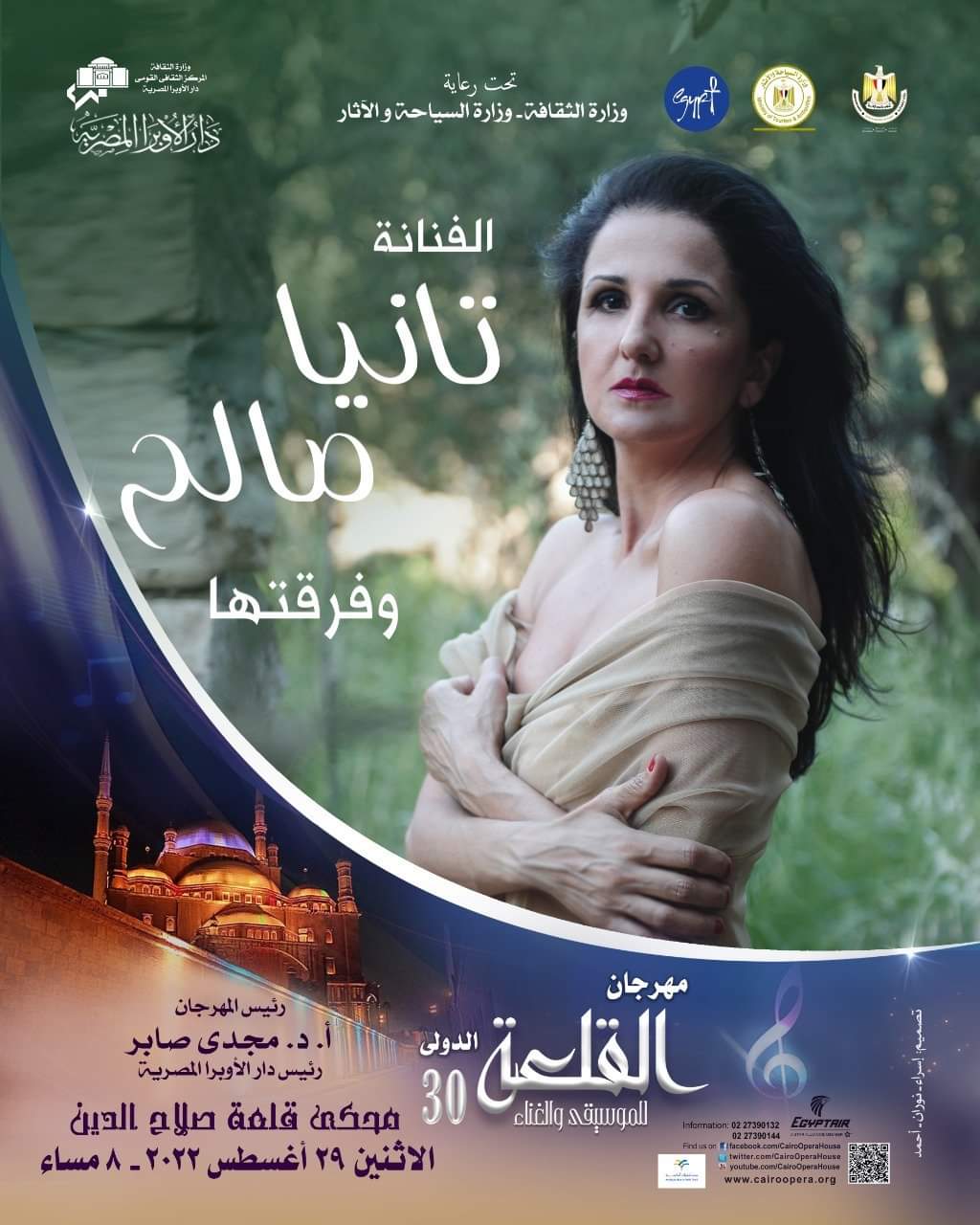 روجت المطربة اللبنانية تانيا صالح لحفلها المقرر انطلاقه على مسرح محكي القلعة ضمن فعاليات الدورة الـ 30 لمهرجان القلعة للموسيقي والغناء.