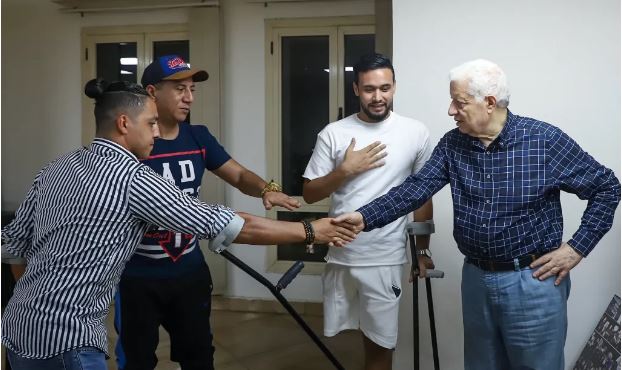 مرتضى منصور يستقبل مؤسس كرة القدم لأصحاب الساق الواحدة في مصر| صور