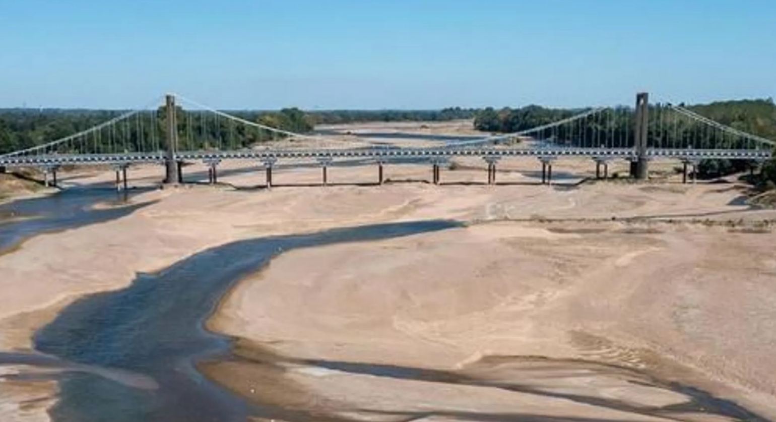 واختزلت صورة تداولها رواد مواقع التواصل لنهر لوار، التأثير الهائل الذي تركه تغير المناخ، حيث أظهرت جسرا يمر فوق النهر، لكن لا مياه تتدفق تحت الجسر، إنما أرض جرداء تتخللها بقع مائية متناثرة هنا وهناك.