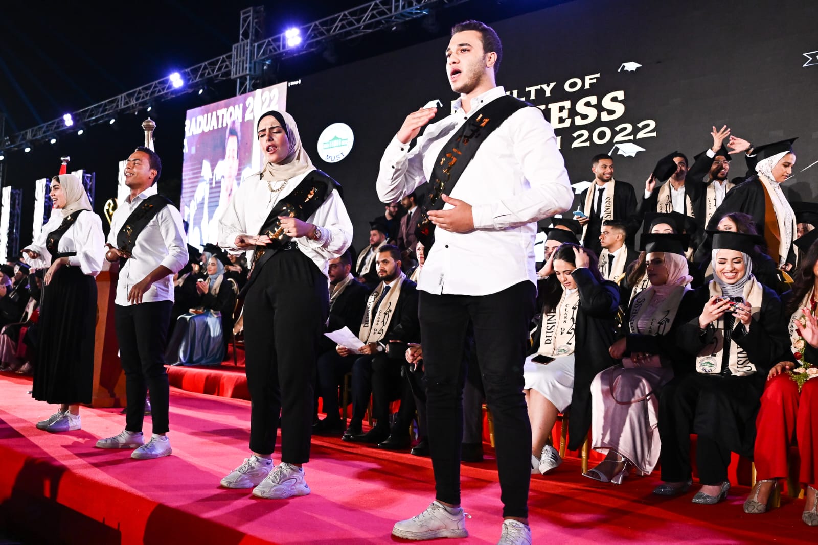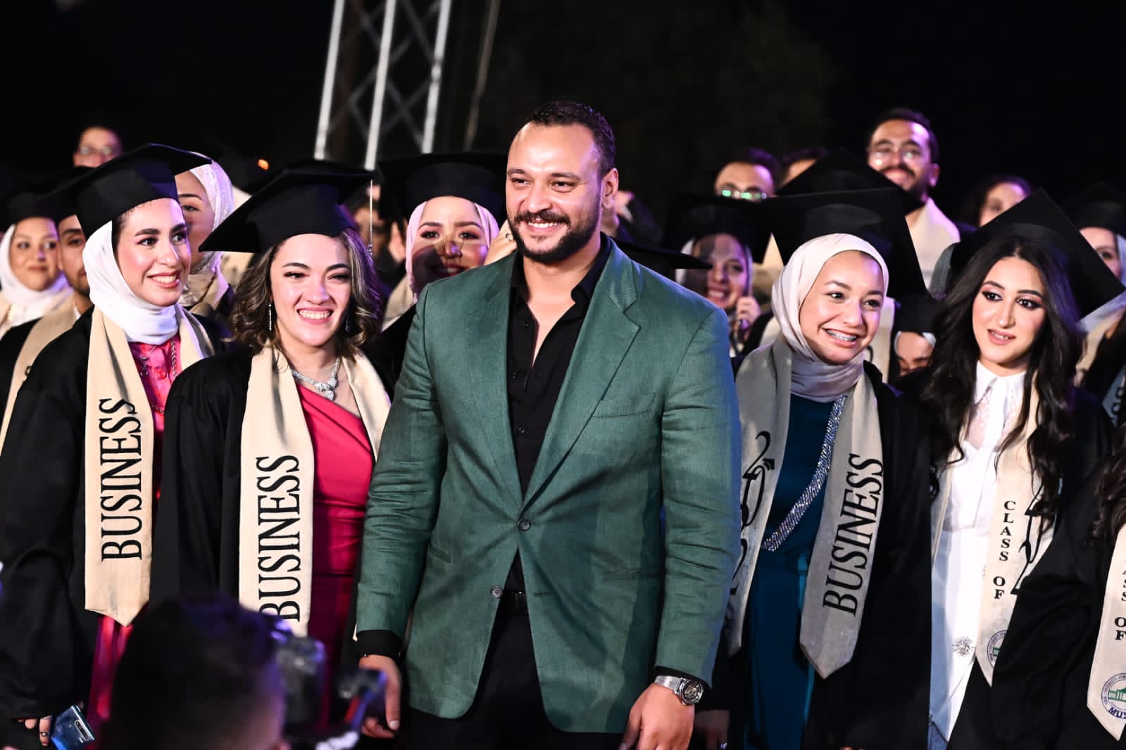 ورحب د. شريف رفعت بالحضور وضيوف الحفل موجهًا لهم الشكر على مشاركة الطلاب فرحتهم بعد الانتهاء من مشوارهم التعليمي والاستعداد لخوض تجارب الحياة العملية متسلحين بالعلم والانطلاق للساحة التجارية متسلحين بأحدث الأساليب العلمية الحديثة والبرامج الحديثة في مجال إدارة الأعمال"، وقدم د. رفعت الشكر والتحية لكل القائمين على الحفل وعلى رأسهم الكاتب والإعلامي محمد فودة عضو مجلس الأمناء ومستشار الجامعة، كما وجه الشكر للجنة المنظمة لحفلات التخرج، ولأعضاء هيئة التدريس الذين كانوا بمنزلة أولياء أمور لجميع الطلاب خلال فترة دراستهم، قائلًا: "نقدم التحية على ما قدمتموه من دعم لطلابكم طوال مسيرتهم التعليمية، كما قدم التهنئة لأولياء الأمور مؤكدًا أن الفرحة اليوم تخص أولياء الأمور أكثر من الخريجين لأنهم أصحاب هذا الحفل الحقيقيين، ولا يمكن أن يتم تغافل دور الأب الحامي لأبنائه والأم المدرسة التي تنشئ النبت الصالح للمجتمع فلهم جميعًا كل التحية والتقدير".