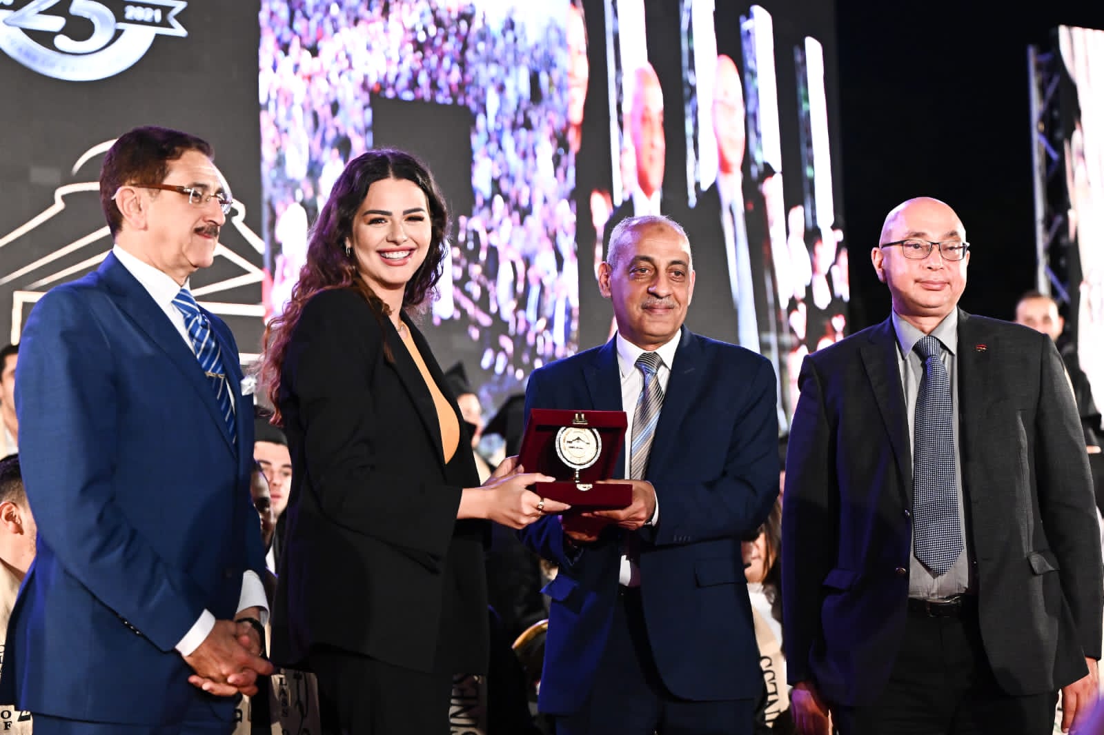 • تكريم الفنان أحمد خالد صالح والفنانة هنادي مهنى على هامش الحفل.. والفنان يؤكد: نعتز بالتكريم من صرح عملاق مثل جامعة مصر.