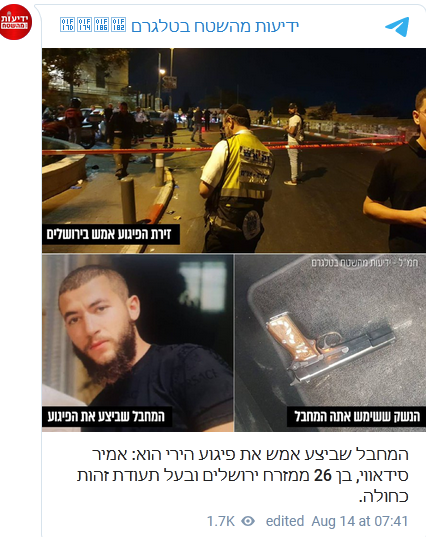 وتمت الإشارة إلى أنه "في أعقاب المطاردة المستمرة التي شارك فيها العديد من قوات الشرطة وحرس الحدود وجهاز الأمن العام، قام المشتبه بتنفيذ الهجوم في البلدة القديمة بالقدس بتسليم نفسه ومعه السلاح المستخدم وفق الاشتباه في تنفيذ عملية إطلاق النار".
