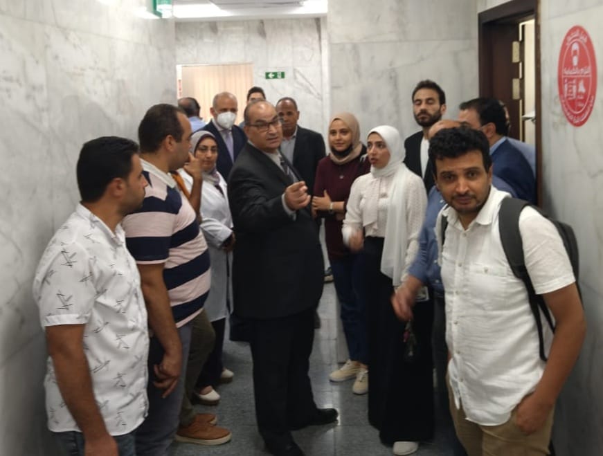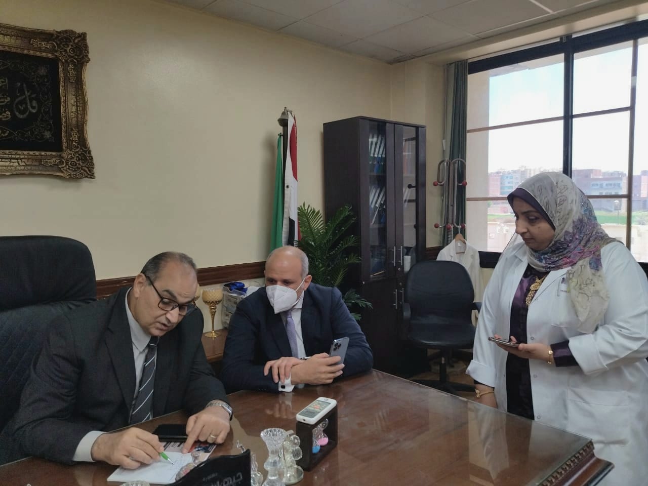 من جانبه قام الدكتور وائل الدرندلي نائب رئيس الهيئة بجوله تفقدية بالمستشفى تابع فيها سير العمل بجميع الأقسام، والاطمئنان علي الخدمة المقدمة للمرضي بقسم الاستقبال ووحدة العناية المركزة وعناية القلب، وقسم الكلى الصناعي، كما حرص على التأكد من توافر الأدوية والمستلزمات الطبية بجميع الأقسام، كما شدد على ضروة تنفيذ إستراتيجية الهيئة في التدريب والبحث العلمي والتعليم الطبي المستمر للساده الأطباء بكافة تخصصاتهم وكل الأطقم الطبية العاملة بالمستشفى.
