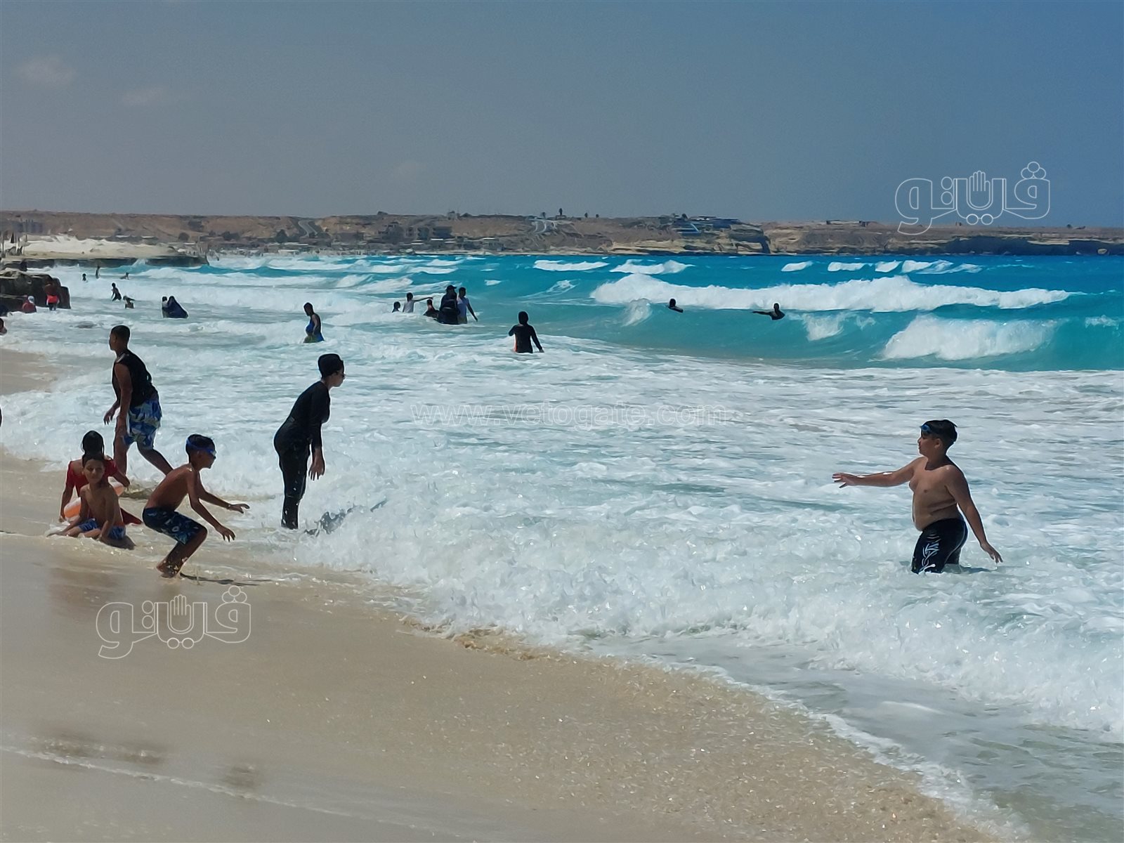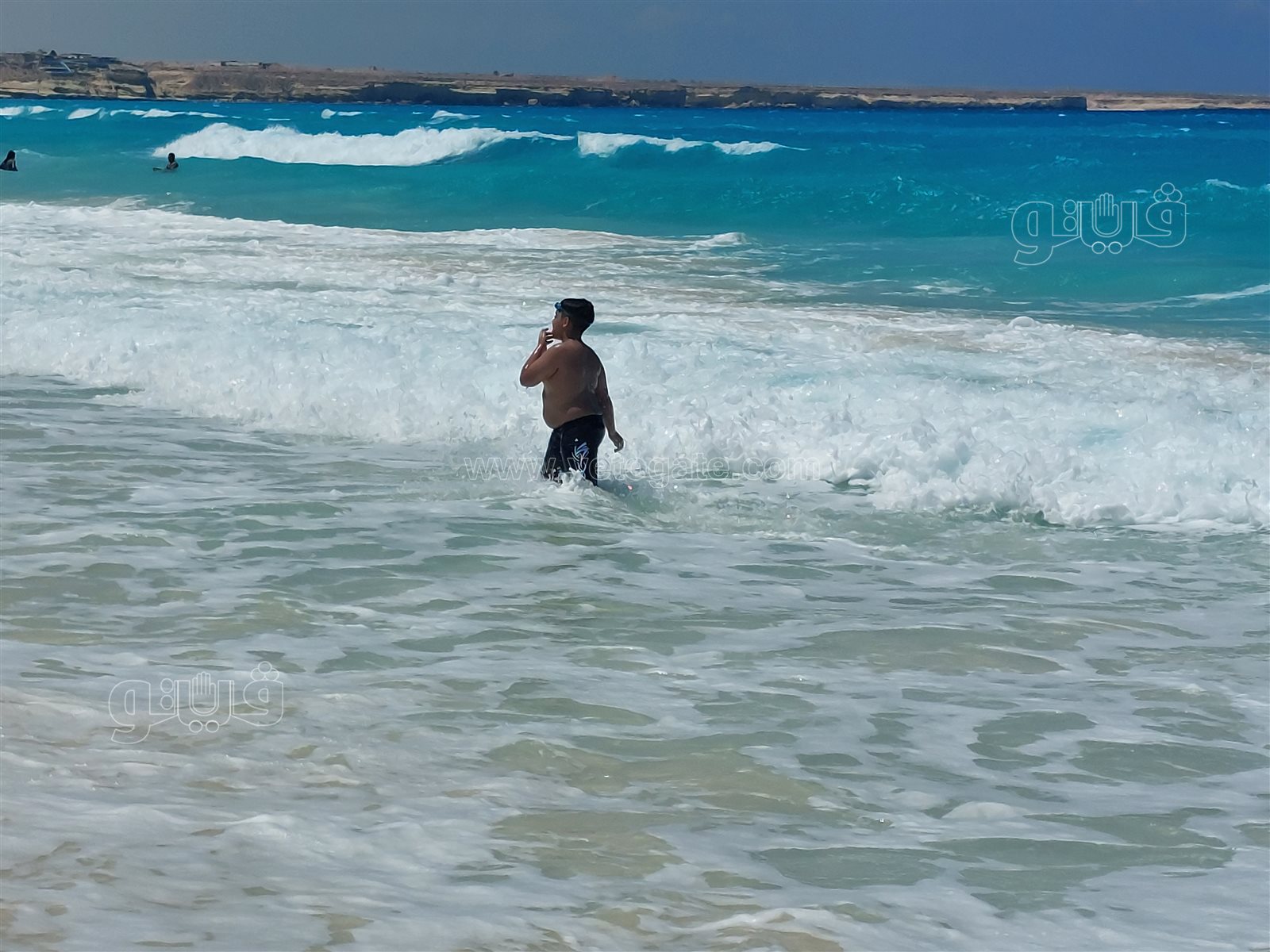 ارتفاع الأمواج بشواطئ البحر المفتوح في مطروح.. والمصايف تحذر الزوار | فيديو وصور