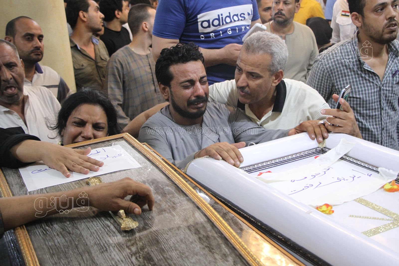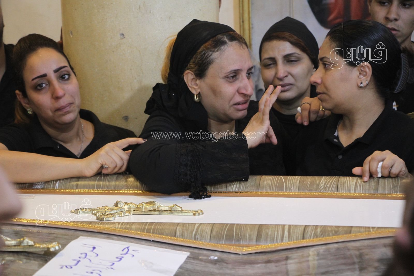 وضم الأب والأم الجثمان أثناء تواجده في كنيسة السيدة العذراء والملاك ميخائيل قبل أداء صلاة الجنازة عليه، حيث لم يتمالكا دموعهما التي انهمرت حزنا على رحيل نجلهما.