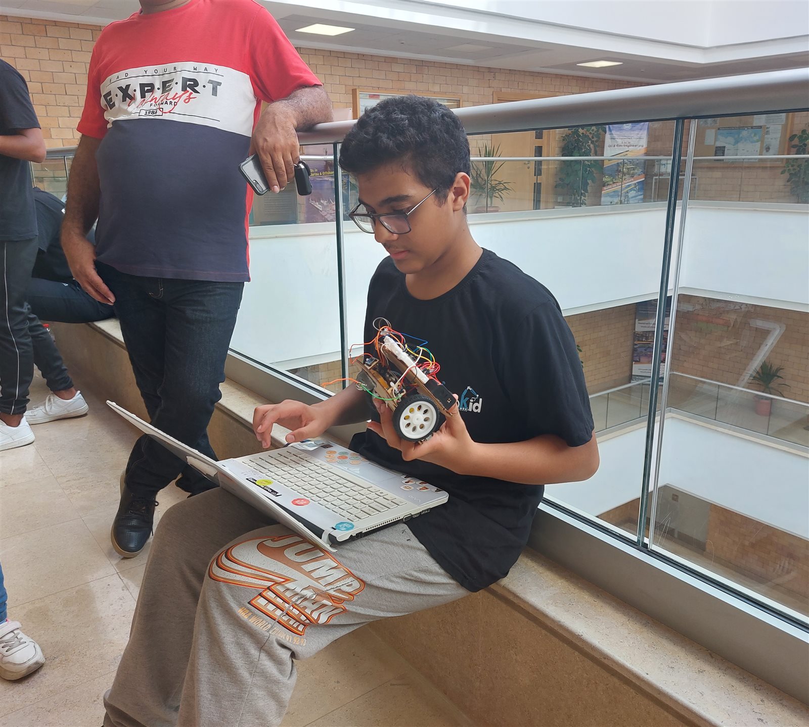 وأوضح عبد الرحمن عمار، وهو مدرب للطلبة، وطالب في نفس الوقت بمدارس stam للمتفوقين بالفيوم، انه ينقل خبراته لطلبه في مجال صناعة الروبوت وكونه في نفس عمرهم فإن معدل الاستجابة يكون سريع منهم.
