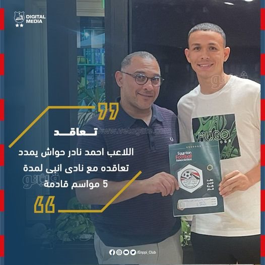 نجح نادي إنبي في تجديد عقد نجم الفريق الصاعد من قطاع الناشئين، أحمد نادر حواش لاعب منتخب الشباب لمدة 5 مواسم مقبلة، ليقطع الطريق على أندية القمة التي كانت تتنافس على التعاقد مع اللاعب وأبرزهم الأهلي وبيراميدز.