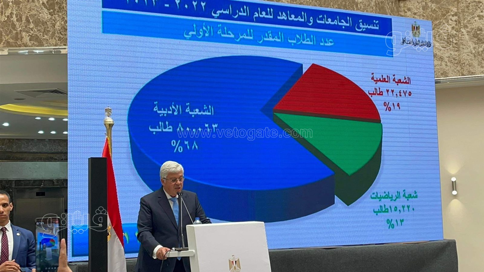 أعلن الدكتور أيمن عاشور، وزير التعليم العالي والبحث العلمي عن عدد الطلاب المتقدمين خلال المرحلة الأولى وبلغوا ١١٧ ألف طالب تقدموا بالمرحلة الأولى مقسمين على الشعبتين العلمية بـ ٢٢.٤٧% والأدبية ٨٠.٠٦ %، بينما تخلف 500 طالب عن تنسيق المرحلة الأولى.