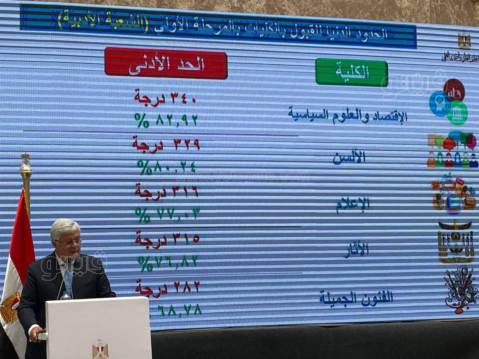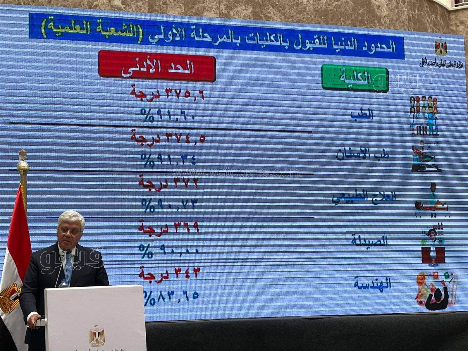 • الشعبة الأدبية: 264.5 درجة فأكثر أي بنسبة 64.51% فأكثر عدد الطلاب: 80063