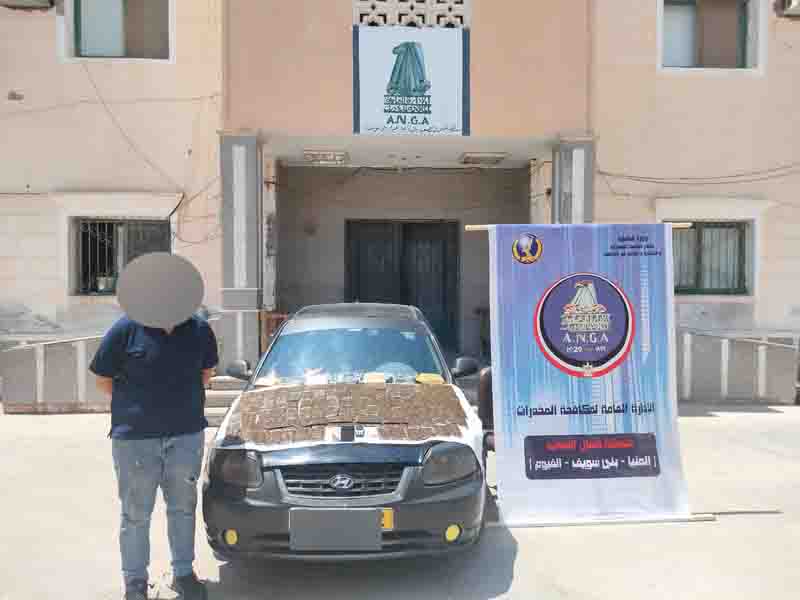كما تم ضبط (أحد الأشخاص، مقيم بدائرة قسم شرطة أول شبرا الخيمة بالقليوبية) حال استقلاله إحدى السيارات بدائرة مركز شرطة بنى مزار، وبحوزته (150 طربة لمخدر الحشيش وزنت 15 كيلو جرام – مبلغ مالى – 2 هاتف محمول).