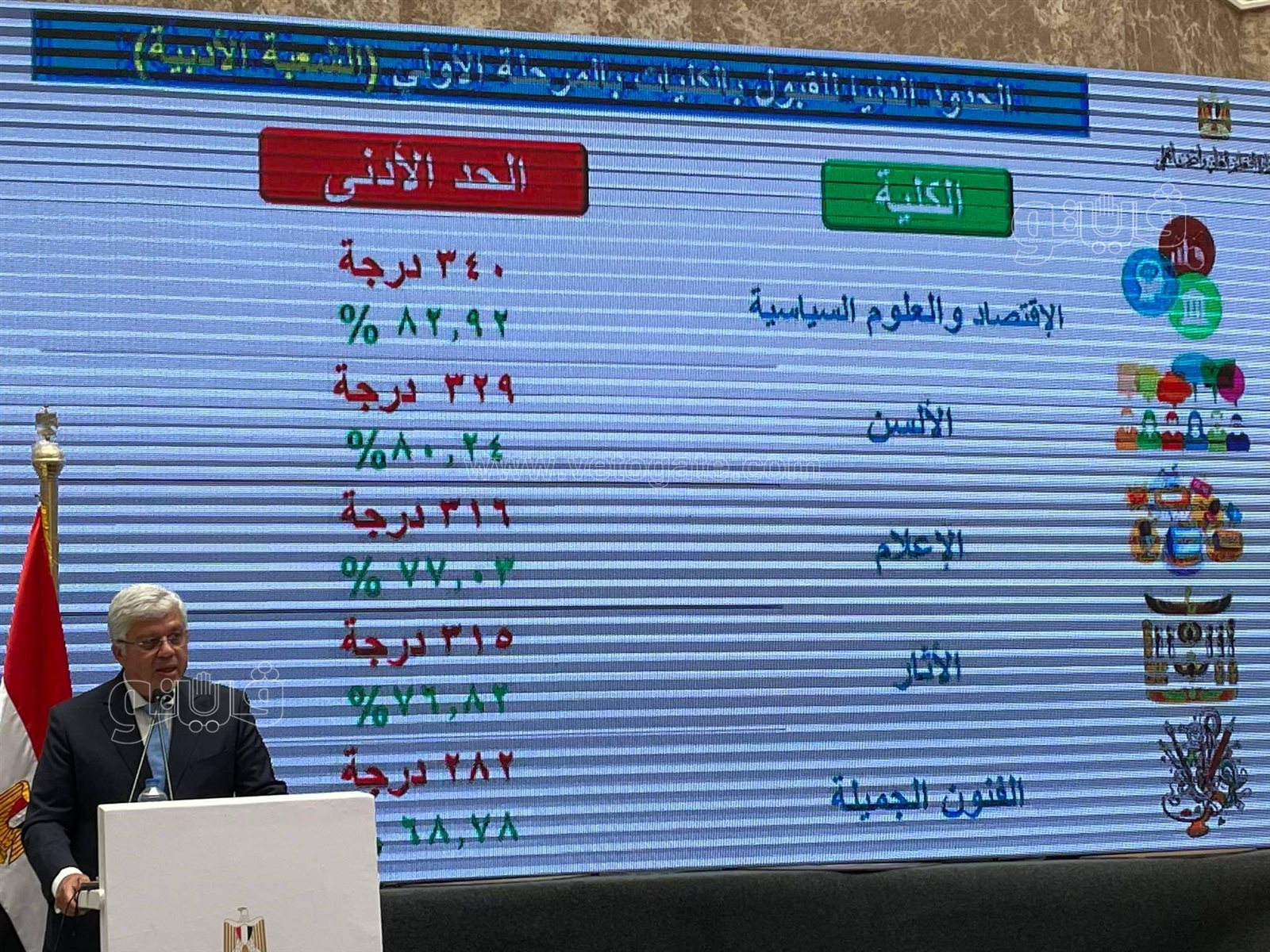 وأعلن الوزير أن الحد الأدنى للشعبة العلمية في المرحلة الثانية 60%، والشعبة الأدبية 58،50%.