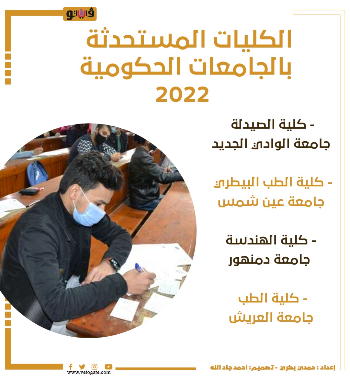 الكليات المستحدثة بالجامعات الحكومية 2022|إنفوجراف الأربعاء 17/أغسطس/2022 - 01:21 م 8/17/2022 1:21:02 PM حمدي بكري شارك طباعة 18 حجم الخط شارك طباعة