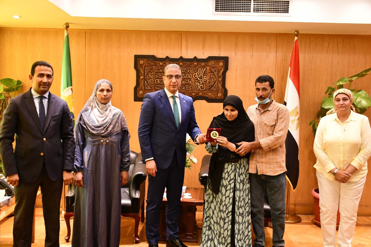 محافظ الفيوم يهدي ميدالية تذكارية للطالبة زينب أكرم الأولى على الثانوية العامة
