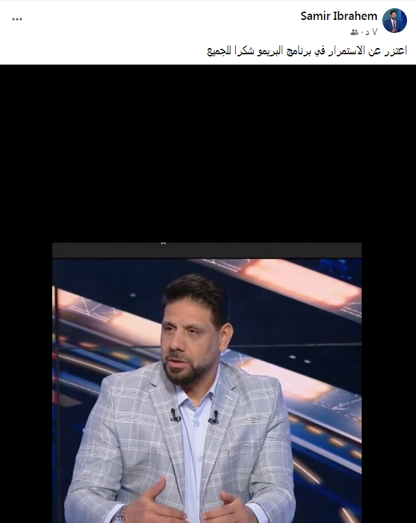 بسبب رضا عبد العال.. سمير كمونة يعلن اعتذاره عن عدم الاستمرار في برنامج البريمو