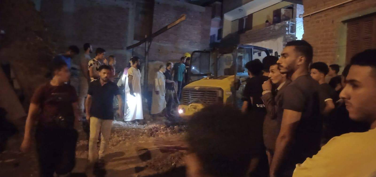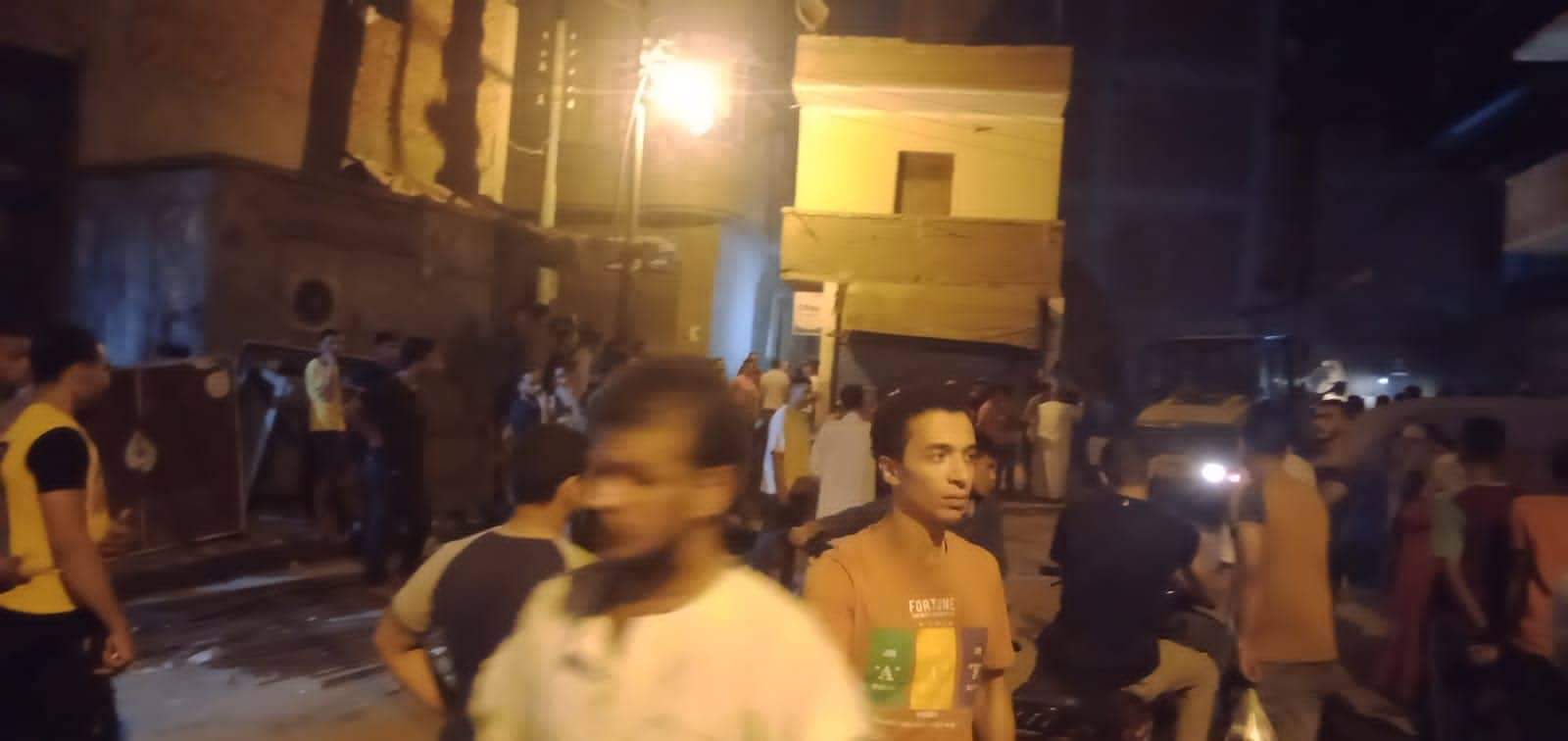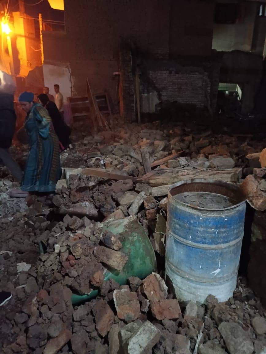 مصرع وإصابة 3 أشخاص في انهيار "مضيفة" ببنها | صور