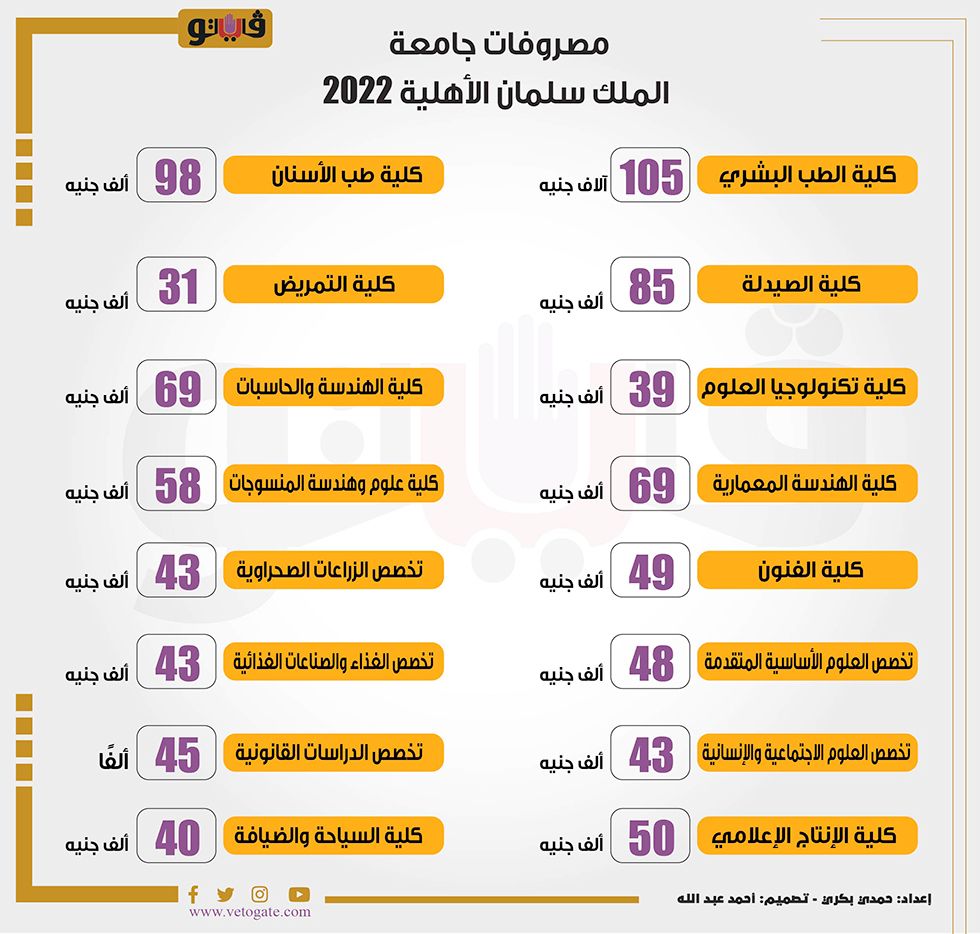 وتضم تغطية تنسيق الجامعات 2022 على بوابة فيتو وصفحاتها الرسمية على السوشيال ميديا ترشيح الجامعات الخاصة والأهلية المناسبة لقدرات الطلاب المالية ومجموعهم في الثانوية العامة إلى جانب أهم البرامج الدراسية المهمة والمطابقة لسوق العمل من خلال متخصصين فى المجالات المختلفة.