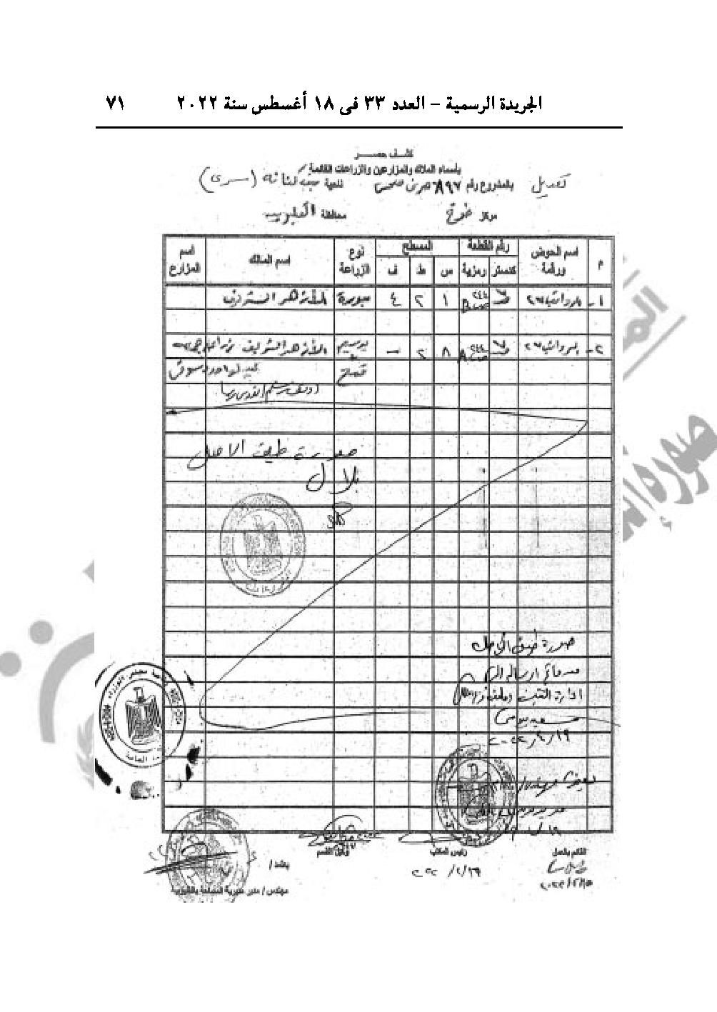كما نشرت الجريدة الرسمية في عددها رقم 2 مكرر (أ)، الصادر في 16 أغسطس 2022، قرار رئيس الوزراء رقم 2769 لسنة 2022، باعتبار مشروع إقامة نقطة شرطة بناحية سندبسط التابعة لمركز زمدينة زفتى محافظة الغربية، والواقع بالقطعة رقم 91 من 31 أصلية، بحوض ساقية شغيب نمرة 1 بمسطح 13 قيراطًا و23 سهمًا تقريبًا، بما يعادل 2448 متر مربع.