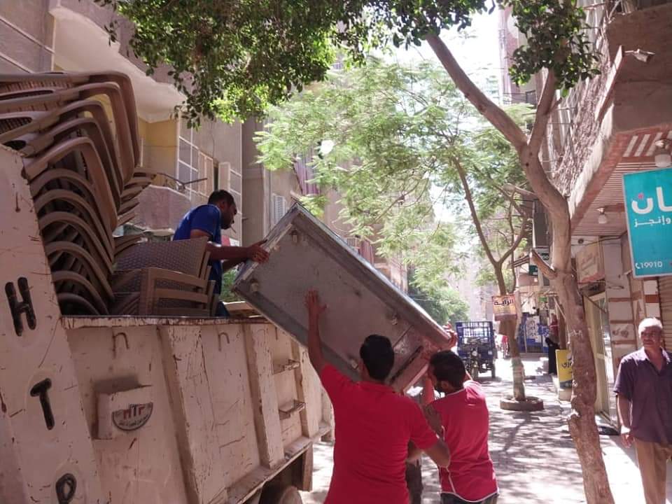 رفع ٢ طن مخلفات وإزالة أكشاك مخالفة وتعديات بشمال الجيزة/ صور