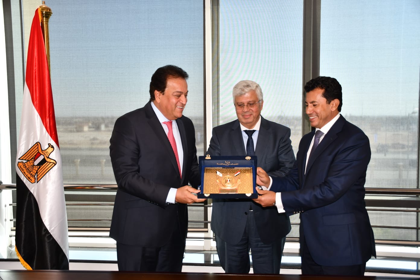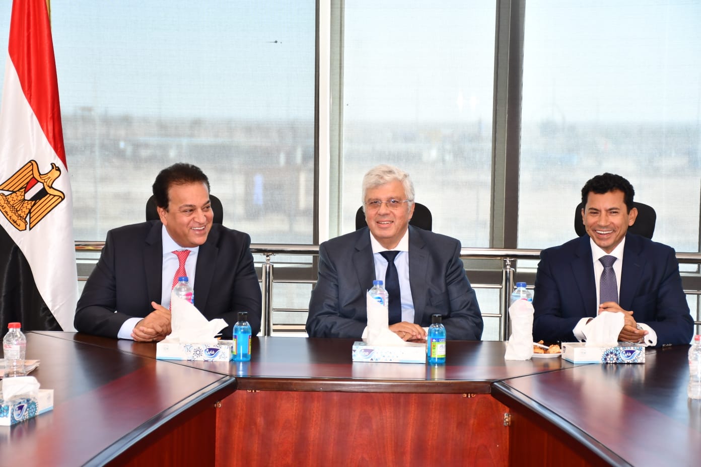 في البداية قدم وزير الشباب والرياضة التهنئة للدكتور أيمن عاشور لثقة القيادة السياسية بتكليفه لحقيبة التعليم العالي والبحث العلمي، وكذلك التهنئة للدكتور خالد عبد الغفار وتكليفه لوزارة الصحة والسكان.