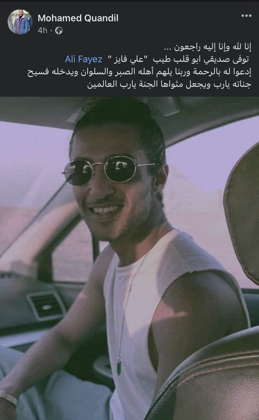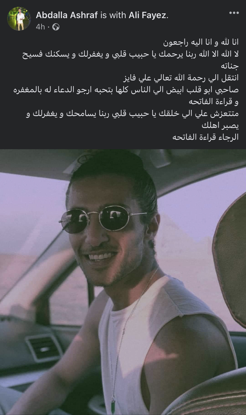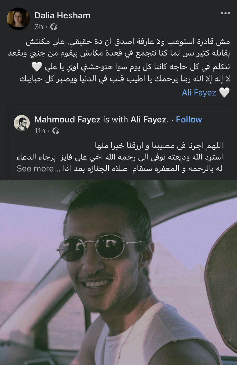 وتضمنت رسائل أصدقاء الراحل علي فايز العديد من المشاعر والمواقف التي جمعتهم، فيما قام آخرون بمشاركة مواقف وصور جمعتهم بالراحل وسط حالة من الحزن والأسى على وفاة صديقهم.