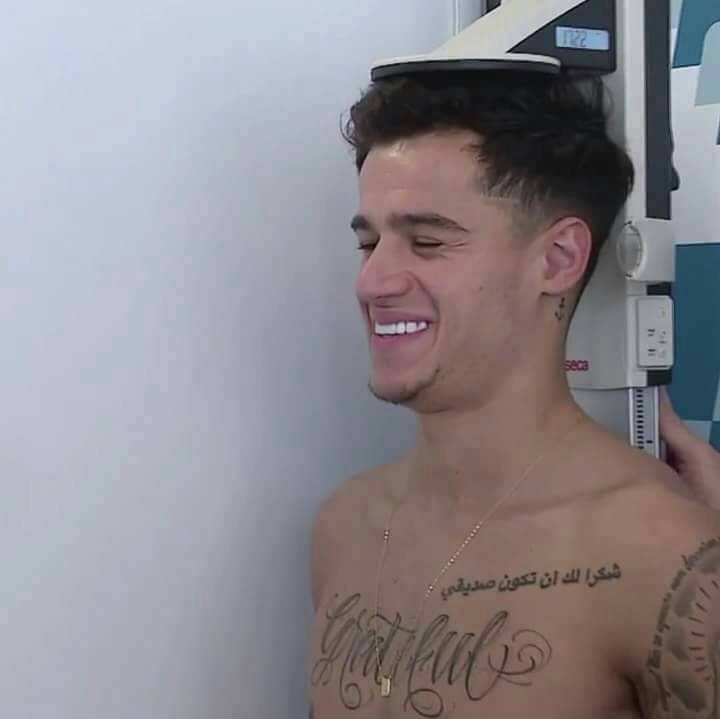 وقام نجم منتخب البرازيل فيليبي كوتينيو، برسم وشم على صدره باللغة العربية.