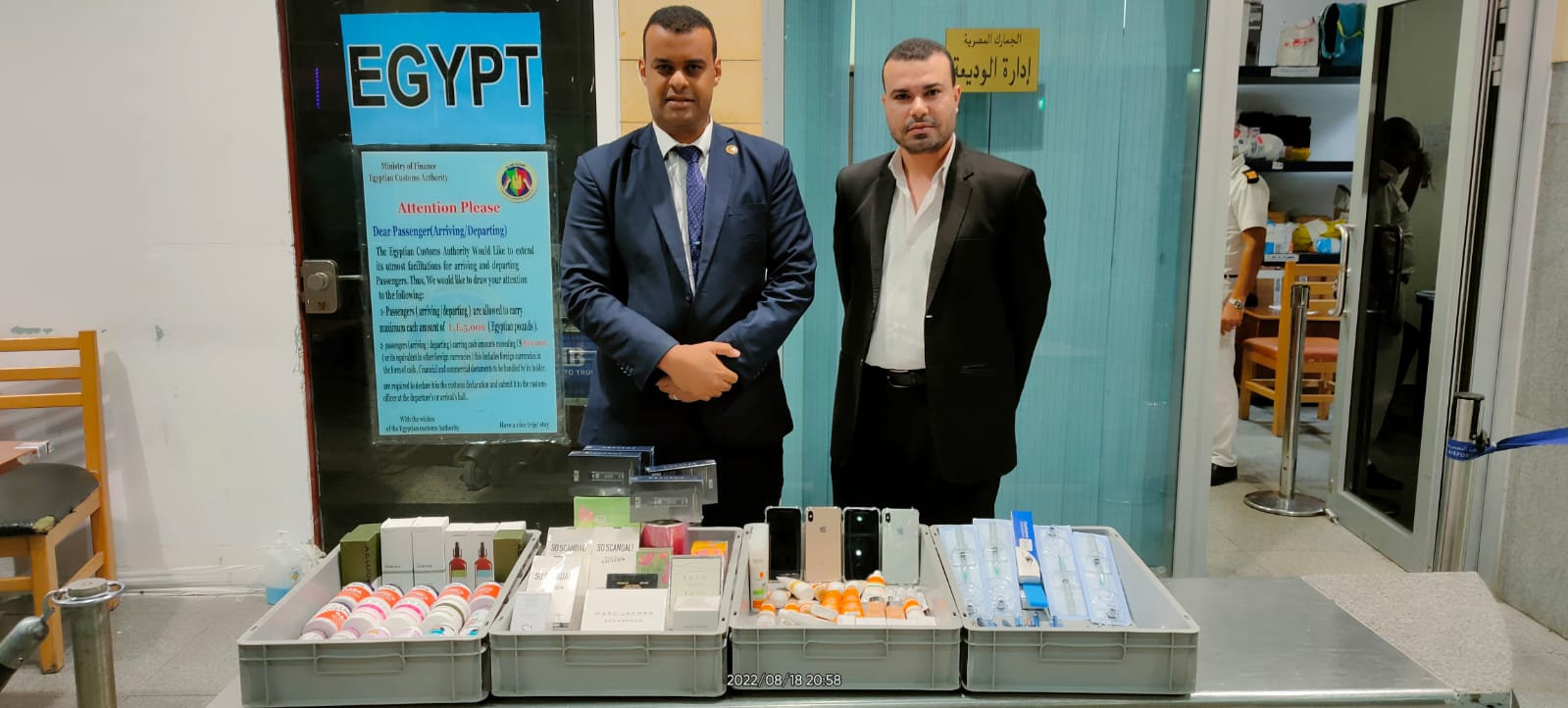تمكن رجال الجمارك بمطار برج العرب الدولي برئاسة مصطفى العربي مدير عام المواني الجوية من ضبط محاولة تهريب كمية من المكملات الغذائية وأدوات ومستلزمات طب وجراحة العيون ومستحضرات التجميل وعدد من الهواتف المحمولة والسجائر والشيش الإلكترونية بالمخالفة لقانون مزاولة مهنة الصيدلة رقم ١٢٧ لسنة ١٩٥٥ وقانون الاتصالات رقم ١٠ لسنة ٢٠٠٣ وقانون الجمارك رقم ٢٠٧ لسنة ٢٠٢٠ وتعديلاته وقانون الاستيراد والتصدير رقم ١١٨ لسنة ١٩٧٥.
