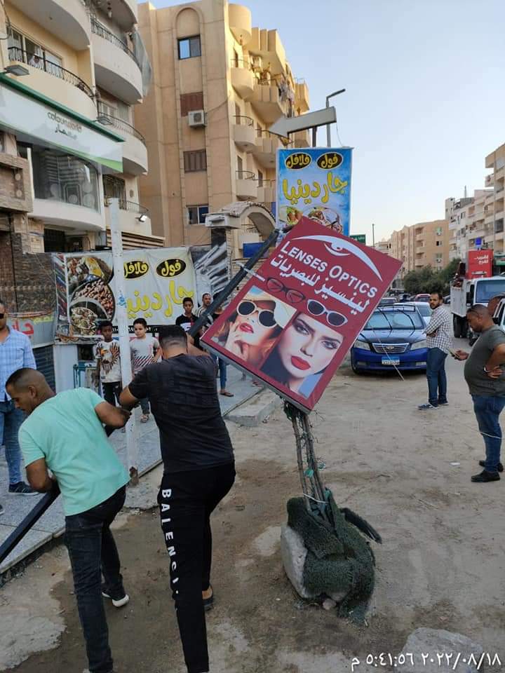 كما تمت إزالة جميع الإعلانات العشوائية وغير المرخصة، وتحرير محاضر للمخالفين ورفع جميع الإشغالات من المقاهي المخالفة للتعليمات والتي تقدم خدمة الشيشة المحظورة للمواطنين، وغلق عدد منها مقامة بالمخالفة بدون ترخيص وتحرير المحاضر اللازمة حيال المخالفين ورفع إشغالات المحال التجارية وتمت مصادرة المضبوطات وإيداعها بمخزن الهضبة واتخاذ كافة الإجراءات القانونية حيال المخالفين وبمتابعة من أحمد إمام نائب رئيس الحي للقطاع.