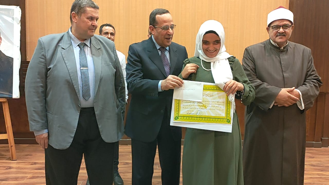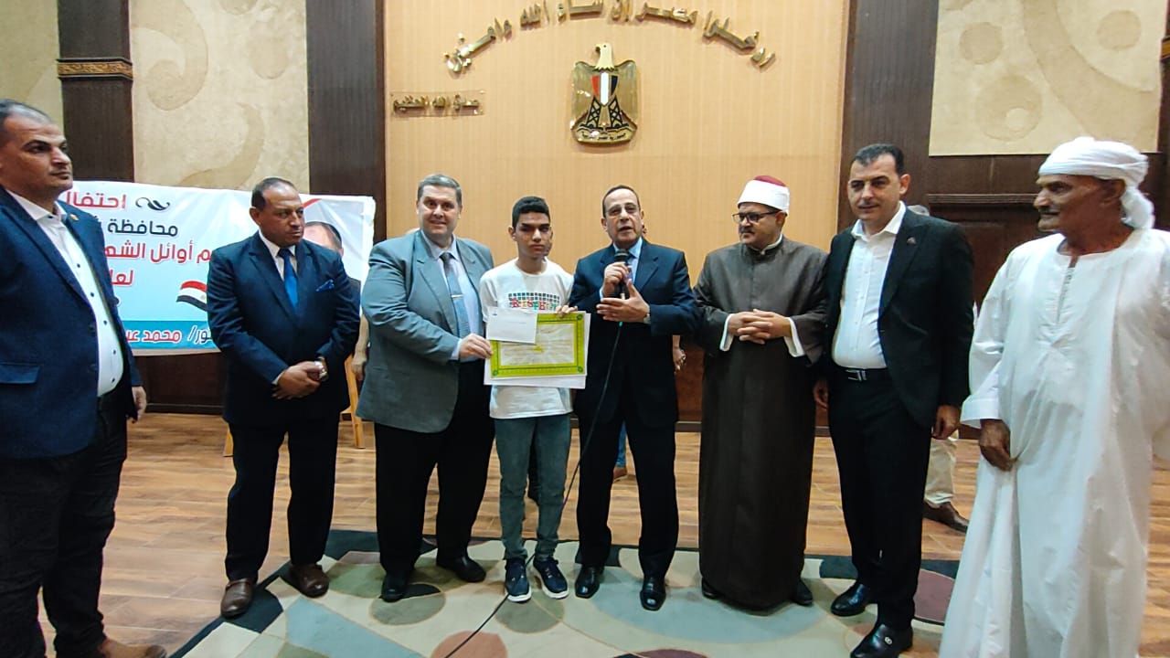 وقدم المحافظ شهادات التقدير لعدد 122 طالبا وطالبة من أوائل الشهادات العامة والأزهرية الى جانب تقديم الجوائز المالية بقيمة 51 ألف جنيها كتبرعات من رجال الأعمال للطلاب المتفوقين.. كما تم تكريم الشيخ محسن أبو القاسم رئيس الادارة المركزية السابق للمنطقة الأزهرية لما قدمه من دعم للتعليم الأزهرى بالمحافظة.