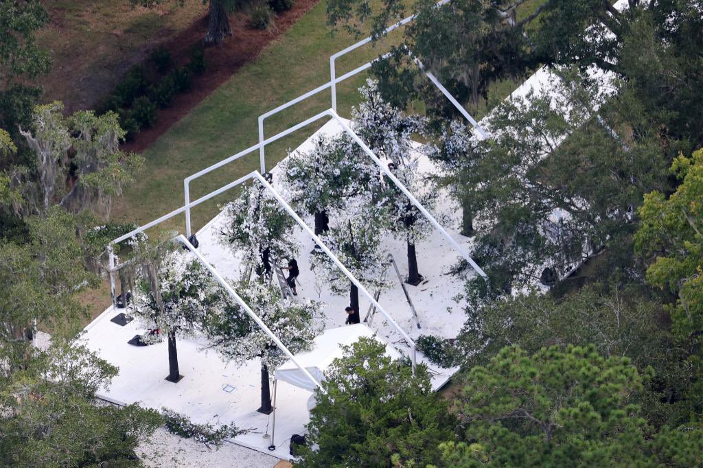 وتجري حاليًّا وضع اللمسات الأخيرة على قاعة الفرح التي تم اعدادها خصيصًا للعروسين في منزل يملكه بن أفليك في بلدة رايسبورو الساحلية بولاية جورجيا، ويبلغ مساحة المنزل 87 فدانًا.