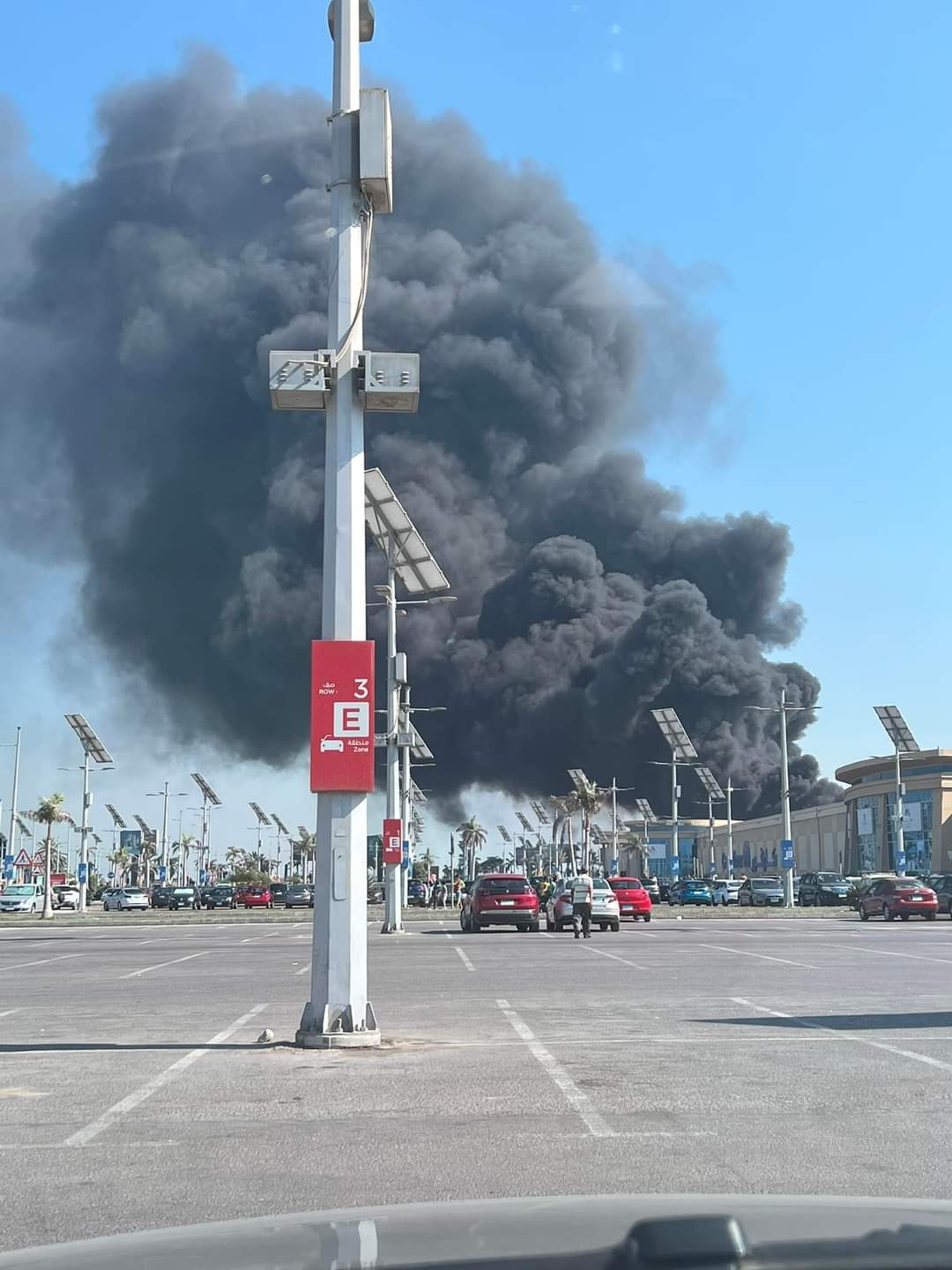 وتصاعدت ألسنة اللهب على مول كارفور محرم بك وغطت سماء الإسكندرية.