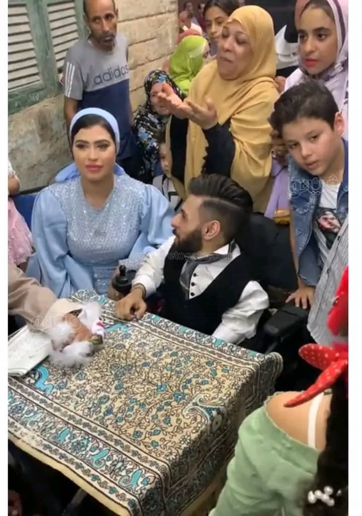 وتختصر هذه اللقطات حكاية إنسانية فريدة من نوعها بدأت بتعارف العريس علي عروسه مستغلا صلة النسب بينهما حيث أن الأخيرة هي شقيقة زوجة شقيقه الأكبر من ذوي الهمم ايضا.